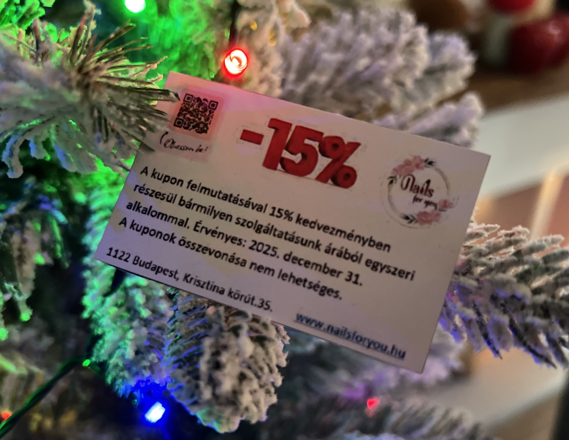 A képen látható kupon felmutatásával 15% kedvezményt kap a szalonban elérhető bármely szolgáltatás árából.